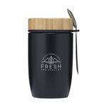 Double-walled, vacuum-insulated stainless-steel food container with bamboo screw cap and loop to carry the stainless-steel spoon included with this set. This container is leak-proof and has a large opening for easy access. Ideal for transporting hot drinks, soup, yogurt, fruit etc. This container keeps the contents warm for up to 8 hours or cool for up to 24 hours. A beautifully designed product with a natural look. Capacity 500 ml. Each item is supplied in an individual brown cardboard box.